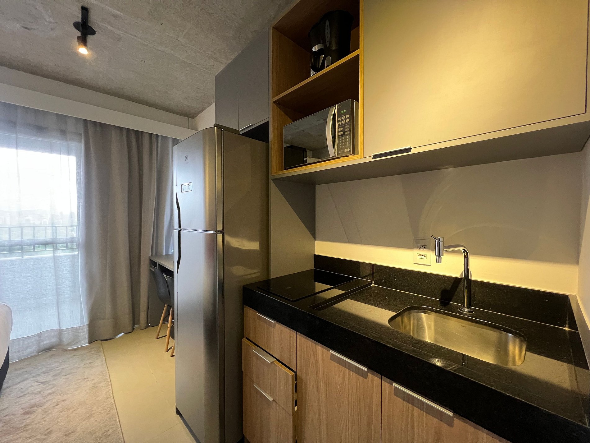 Lindo studio super bem localizado na Rua Augusta (lado Jardins), a 5 minutos da Av Paulista, 7 minutos do Pq Ibirapuera, Rua Oscar Freire e muito mais, regiao rica em restaurantes, bares e lojas. Studio completo com geladeira, Smart TV, enxova de cama e banho, cafeteira, cozinha compacta para fazer pequenas refeições. Condominio completo com academia (enorme), coworking, lavanderia (paga), mini mercado e quadra de beach tenis.
