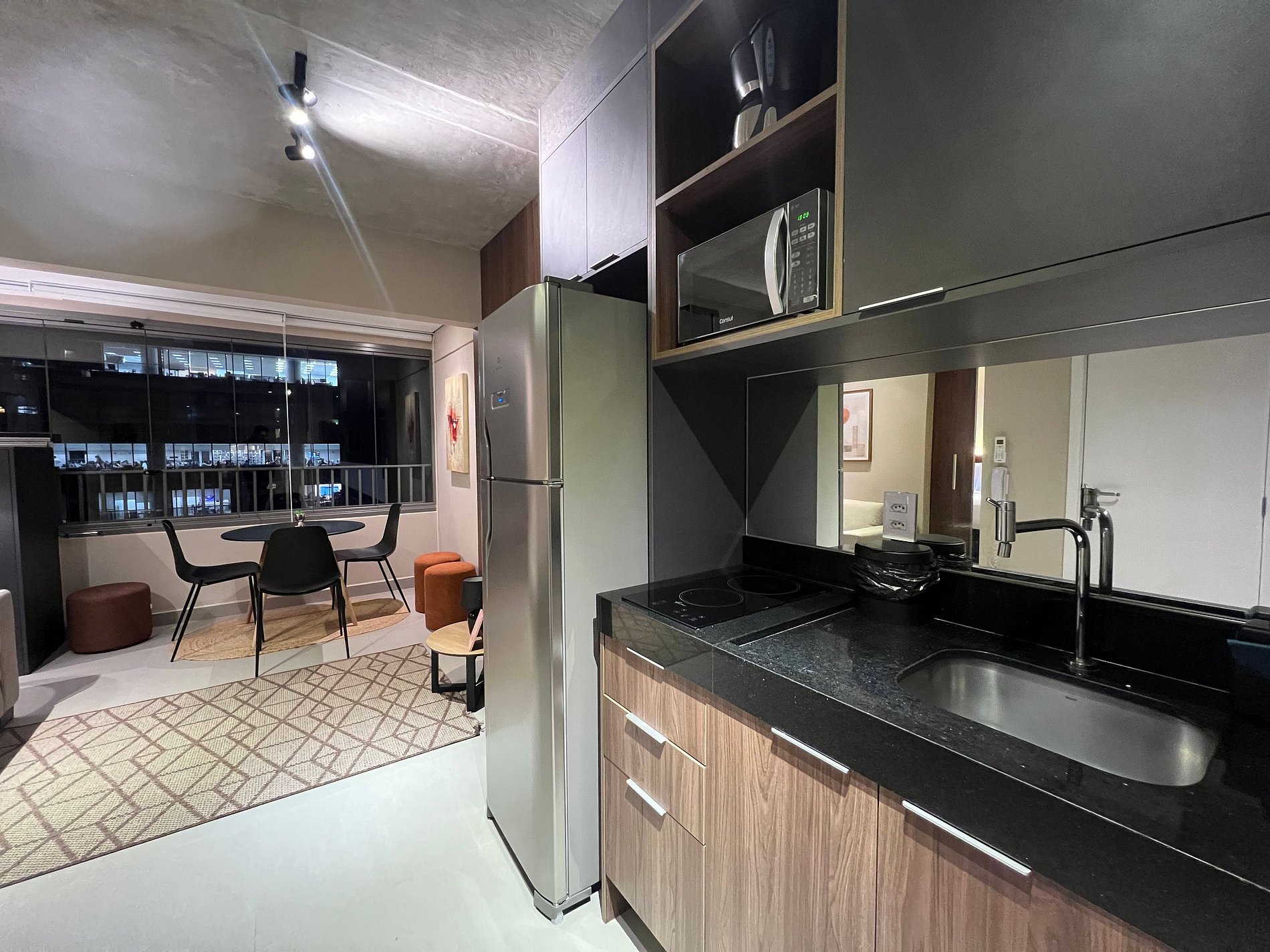Lindo studio super bem localizado na Rua Augusta (lado Jardins), a 5 minutos da Av Paulista, 7 minutos do Pq Ibirapuera, Rua Oscar Freire e muito mais, regiao rica em restaurantes, bares e lojas. Studio completo com geladeira, Smart TV, enxova de cama e banho, cafeteira, cozinha compacta para fazer pequenas refeições. Condominio completo com academia (enorme), coworking, lavanderia (paga), mini mercado e quadra de beach tenis.