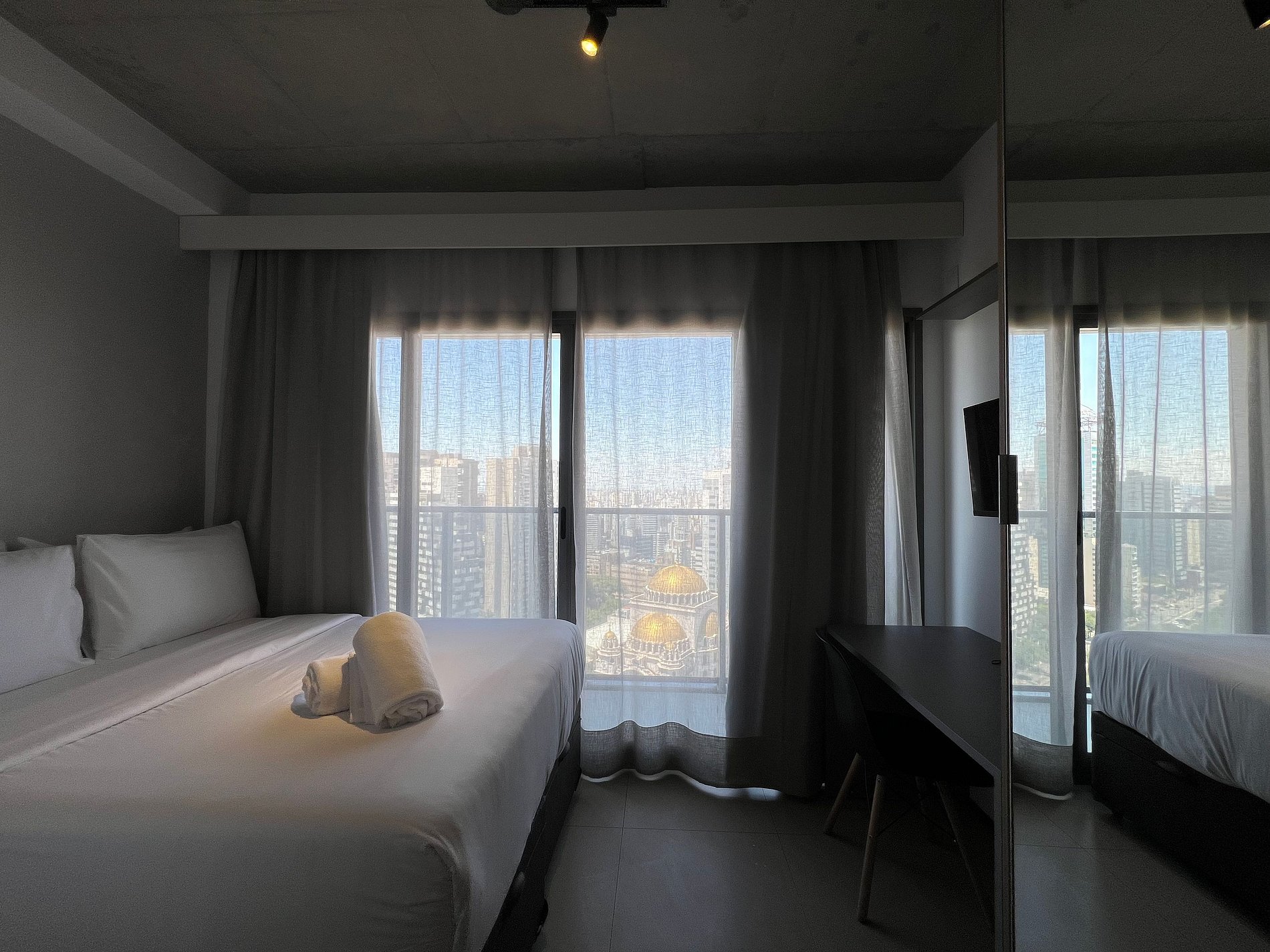 Acomodação em um condominio incrivel, super completo com lavanderia, piscina no rootop, jardim, academia, salas de reunião, mini mercado e muito mais. A acomodação possui cozinha compacta completa, AC, WF, smartTV e uma vista incrivel da cidade, venha viver essa experiencia incrivel.