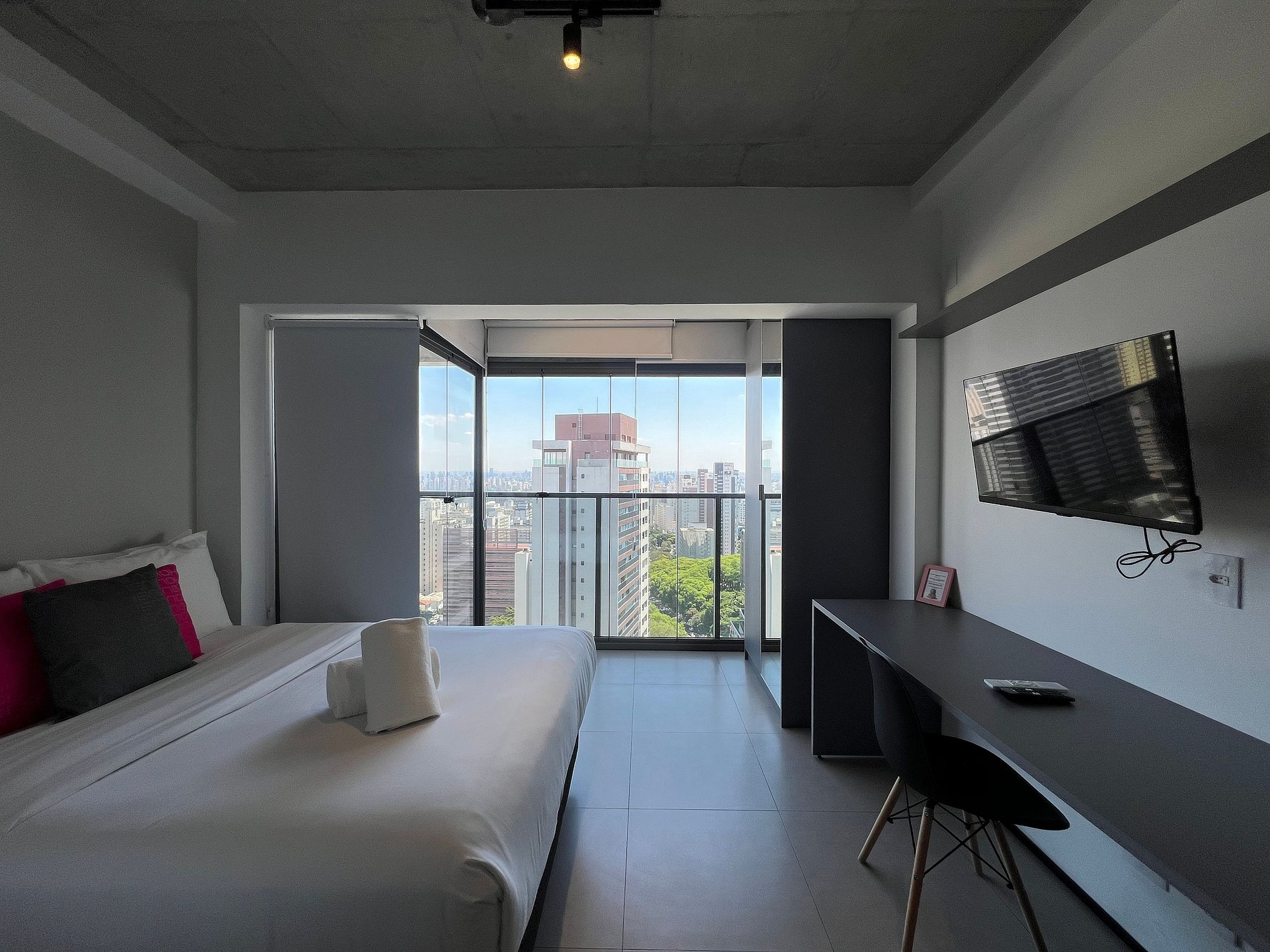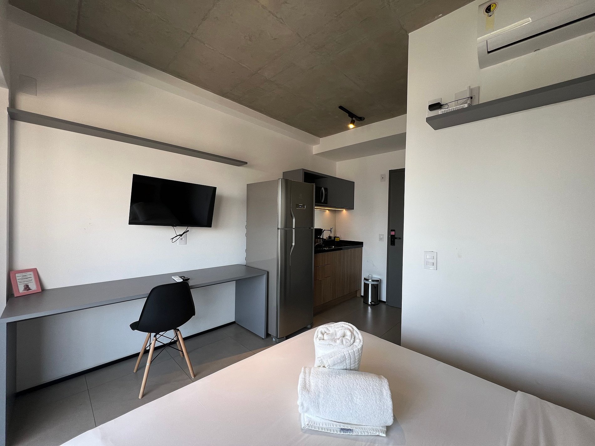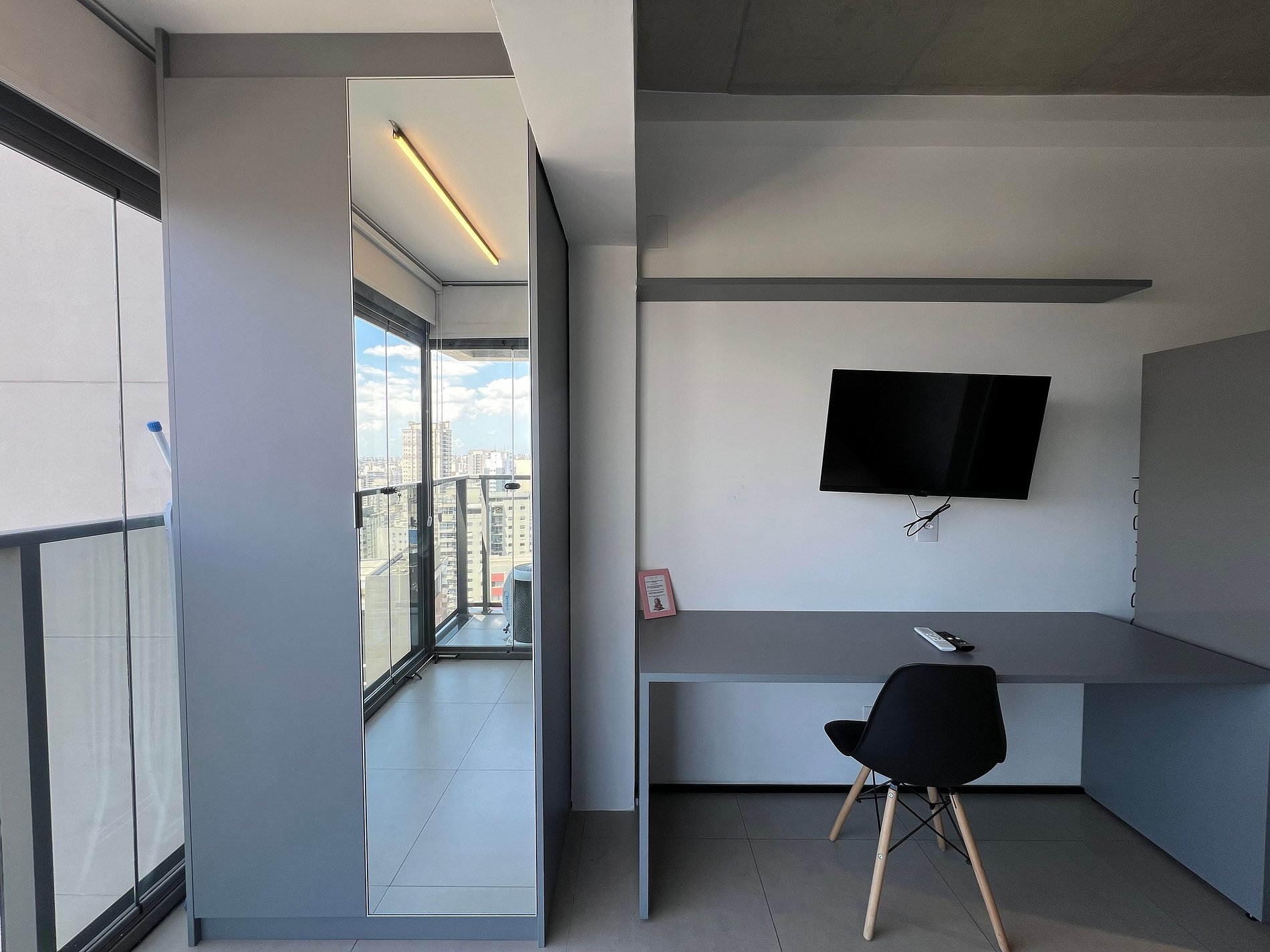 Acomodação em um condominio incrivel, super completo com lavanderia, piscina no rootop, jardim, academia, salas de reunião, mini mercado e muito mais. A acomodação possui cozinha compacta completa, AC, WF, smartTV e uma vista incrivel da cidade, venha viver essa experiencia incrivel.
