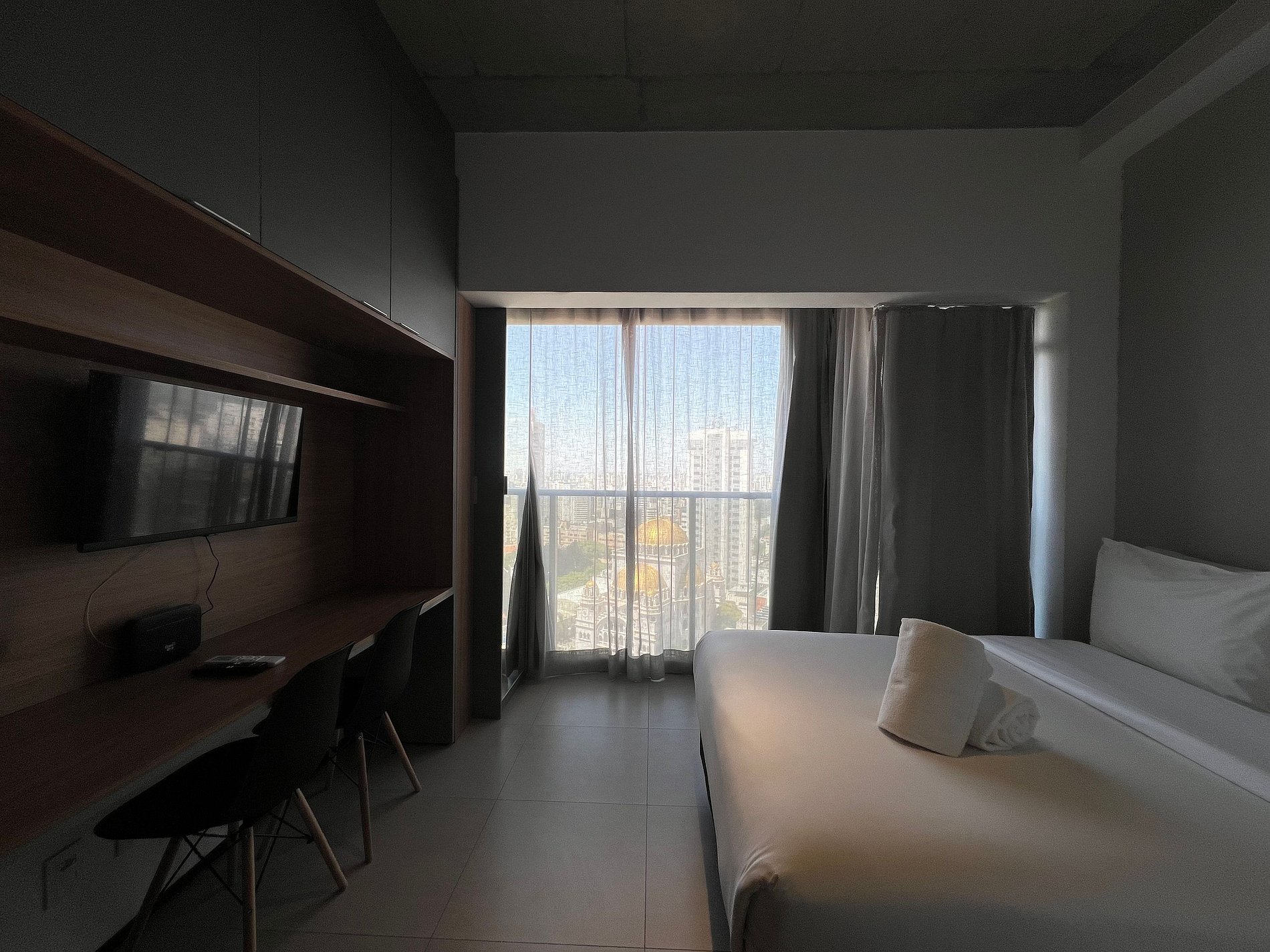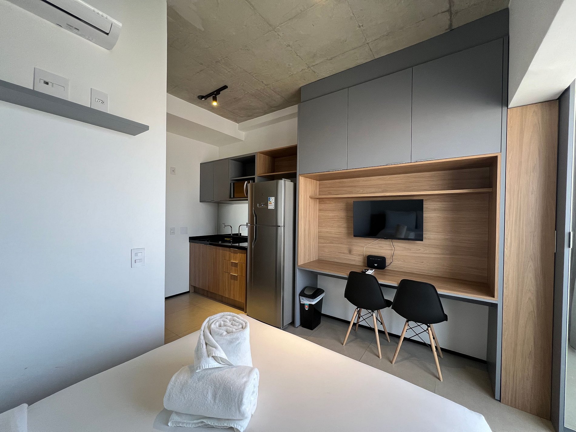 Acomodação em um condominio incrivel, super completo com lavanderia, piscina no rootop, jardim, academia, salas de reunião, mini mercado e muito mais. A acomodação possui cozinha compacta completa, AC, WF, smartTV e uma vista incrivel da cidade, venha viver essa experiencia incrivel.