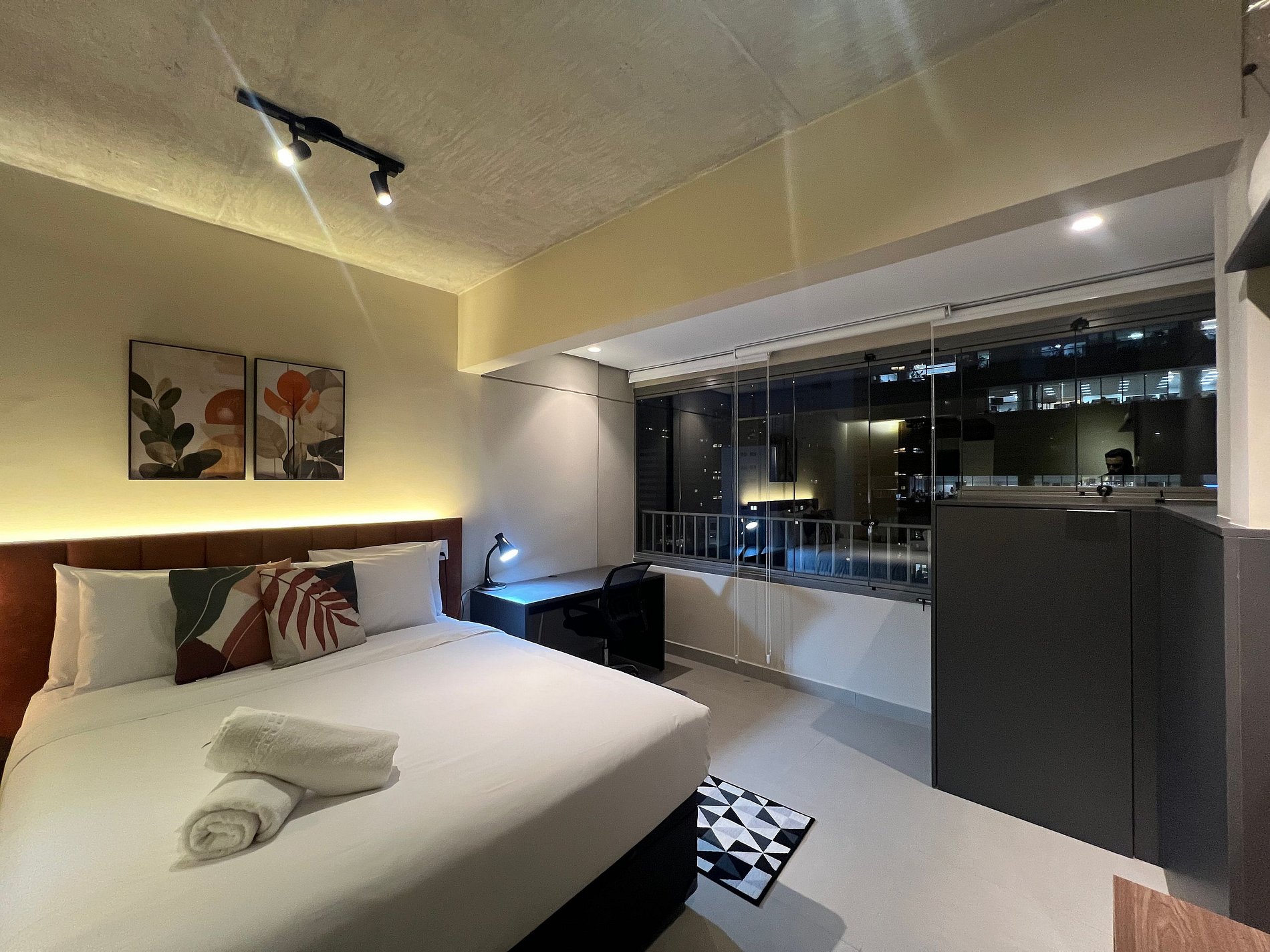 Lindo studio super bem localizado na Rua Augusta (lado Jardins), a 5 minutos da Av Paulista, 7 minutos do Pq Ibirapuera, Rua Oscar Freire e muito mais, regiao rica em restaurantes, bares e lojas. Studio completo com geladeira, Smart TV, enxova de cama e banho, cafeteira, cozinha compacta para fazer pequenas refeições. Condominio completo com academia (enorme), coworking, lavanderia (paga), mini mercado e quadra de beach tenis.