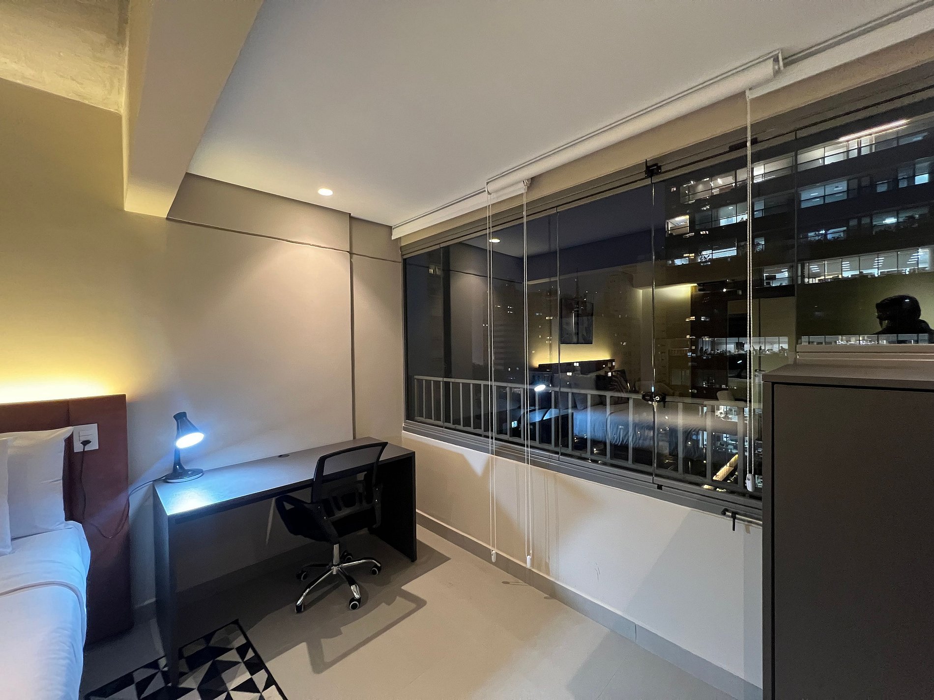 Lindo studio super bem localizado na Rua Augusta (lado Jardins), a 5 minutos da Av Paulista, 7 minutos do Pq Ibirapuera, Rua Oscar Freire e muito mais, regiao rica em restaurantes, bares e lojas. Studio completo com geladeira, Smart TV, enxova de cama e banho, cafeteira, cozinha compacta para fazer pequenas refeições. Condominio completo com academia (enorme), coworking, lavanderia (paga), mini mercado e quadra de beach tenis.